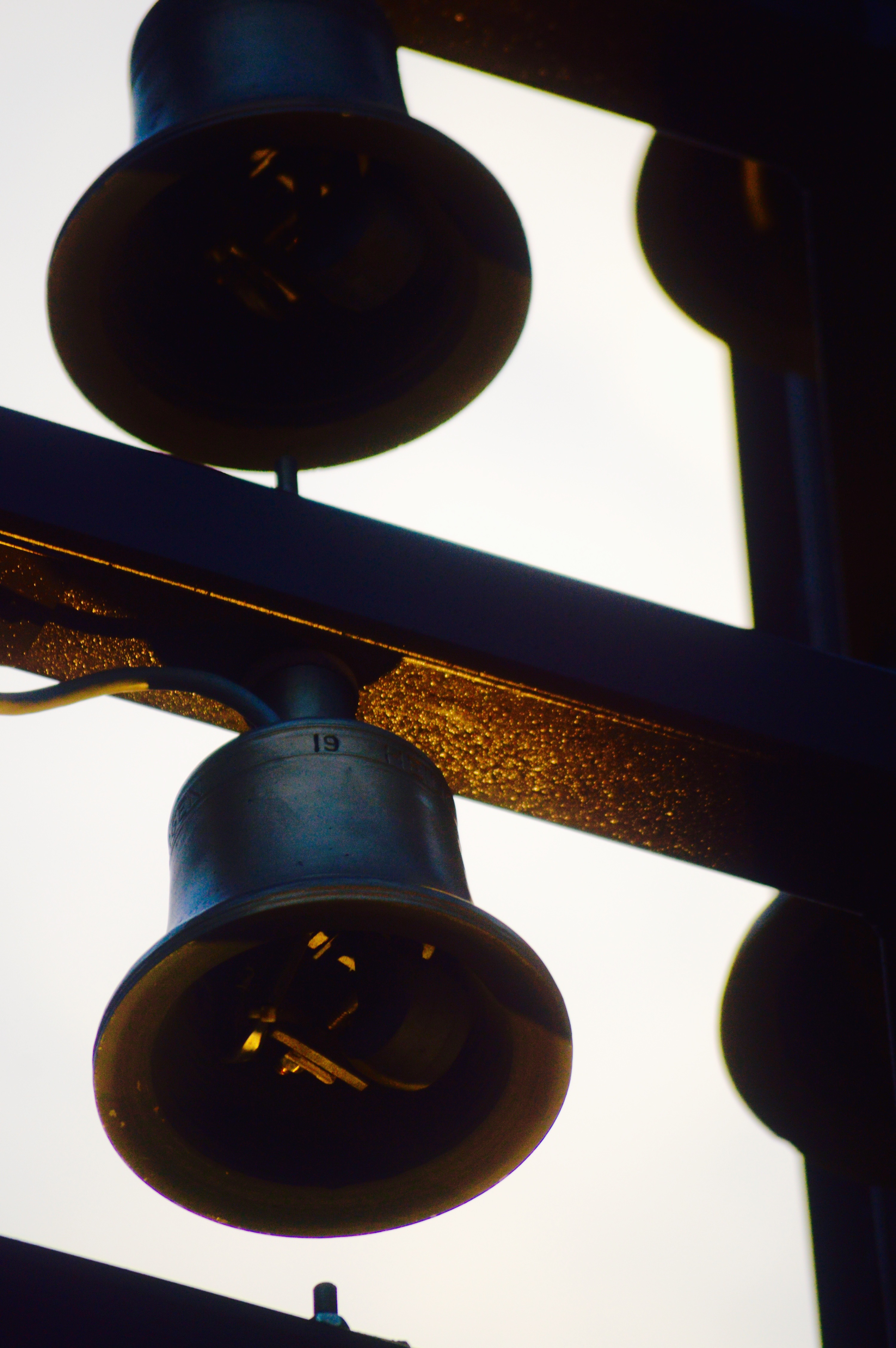 A bell tower rests in the evening.